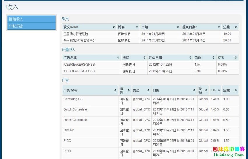本博客加入拿福能中国也很久了,是从2011年他们刚来中国,我就参加了个“千人挑战5万元奖金平分”的活动,从那以后,拿福能举办的大大小小的活动也都参加了,拿过很多小奖品,但这次“三星助你创造无限可能,串联博客贴纸赢大奖”的二等奖奖真实让人感到幸运呢~ 下面贴张自加入一来的收益图,我是个小博客,流量不多,但这家广告公司如此贴近博主,活动丰富,很让我感到欣慰。